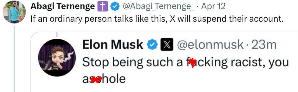 But Musk clearly misses the days when things were handed to him without question because of his wealth and Whiteness.