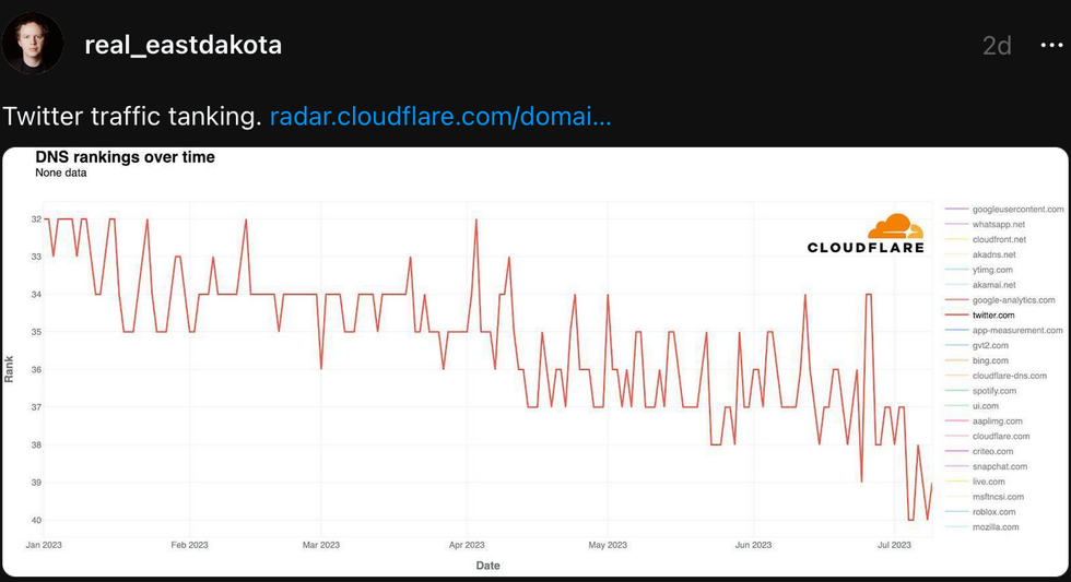 "The Threads effect? Traffic to Twitter's website was down 5% compared with the same days of the previous week, and 11% compared to the same days last year."