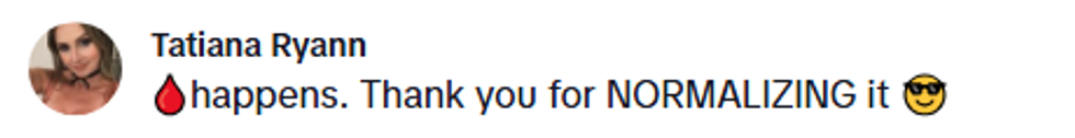 It's 2025, menstruation happens, and sometimes leaks happen. When someone spills food or drink on their shirt or in their lap, they can wipe it with a paper towel and no one thinks twice about it. Why does this have to be any different?
