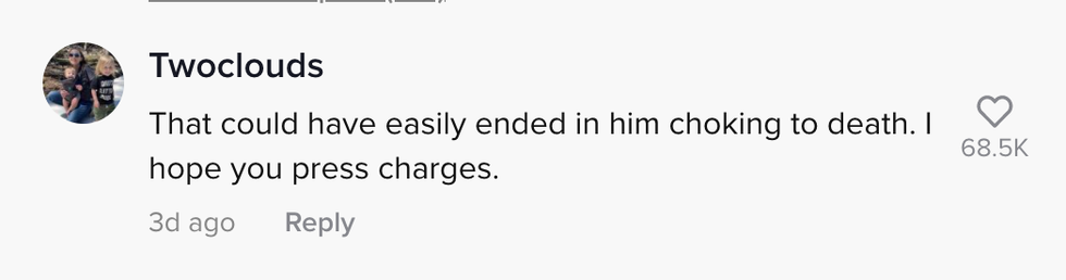 The child continued to scream as Rowe covered their mouth, and Rowe could be heard warning the child "You can eat it or not."