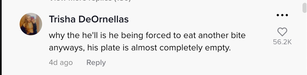 Ignoring the child's screams, after she was finally able to get the food in the child's mouth, she could then be seen holding her hand over their mouth.