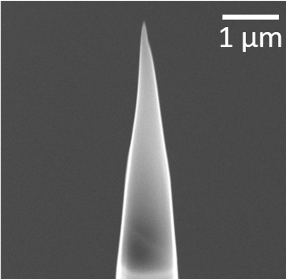 She used a focused beam of charged atoms to carve a tiny, super-sharp tip into its surface.
