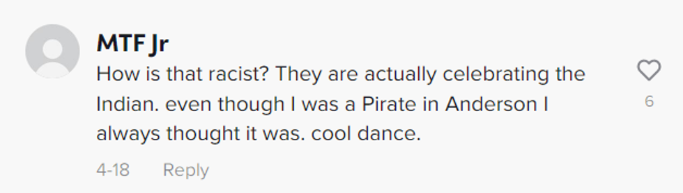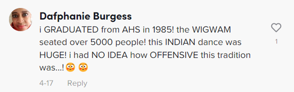 Another TikToker, Lizzy Smith who goes by @c0_0l__ on the platform, was furious about the "shameless racism" and the school's use of a mockery of a sacred dance during a time when it was legally punishable for Indigenous people to participate in their own culture.