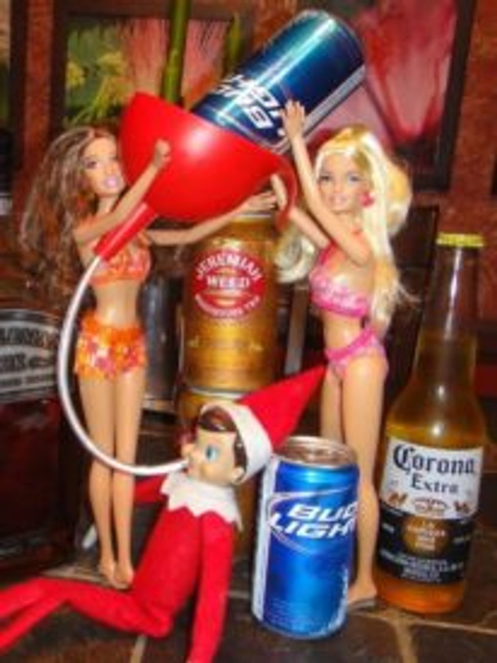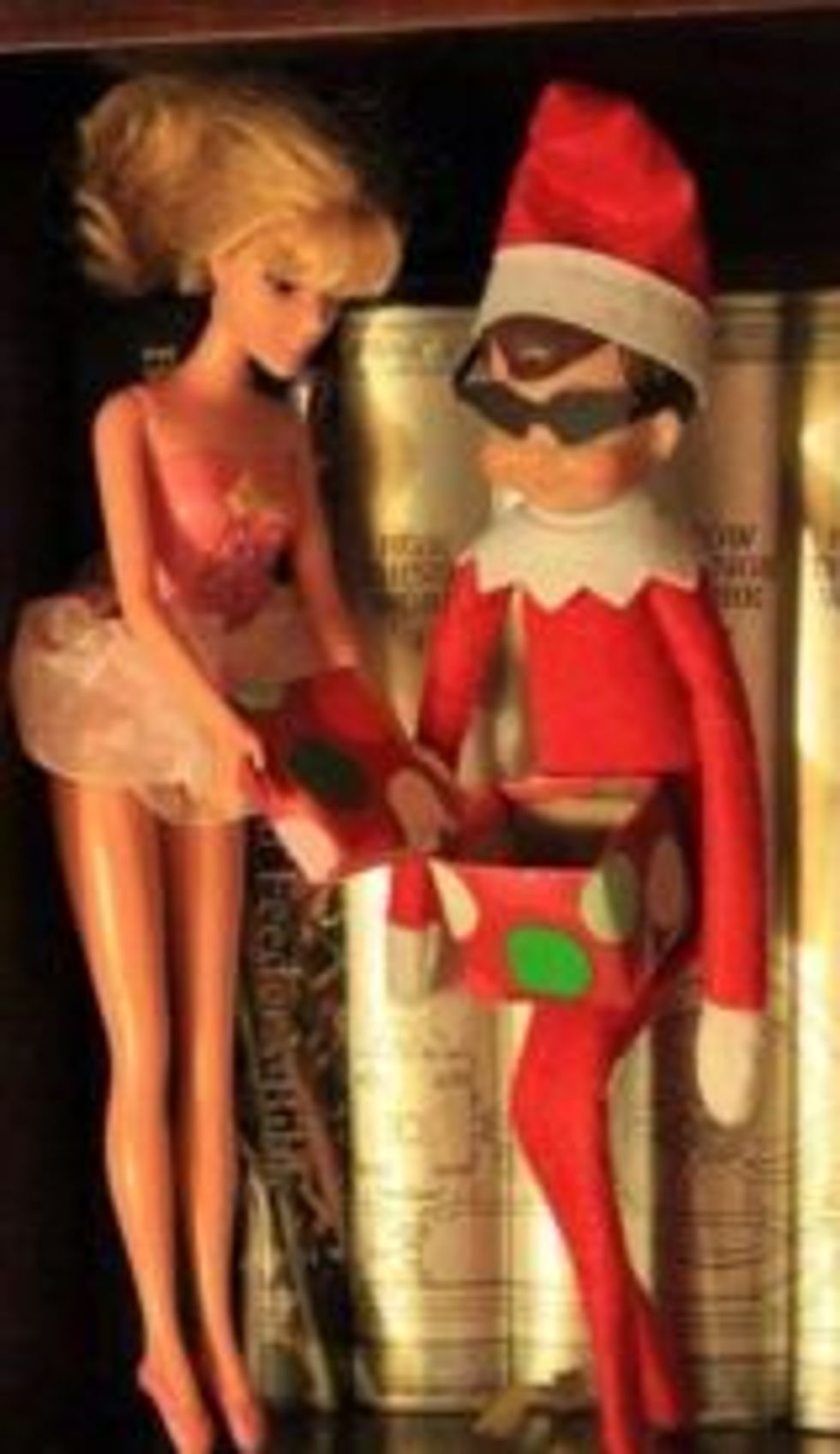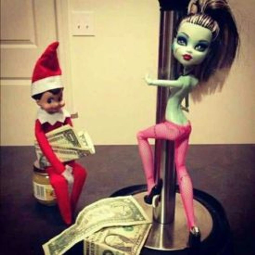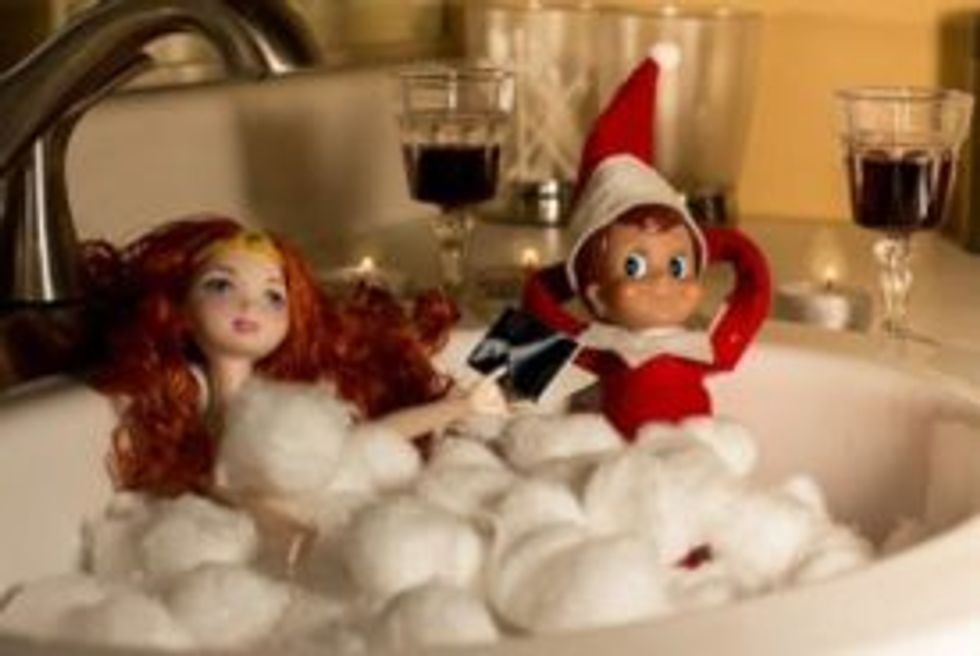 Many families include the Elf on the Shelf in their Christmas celebrations. This naughty Elf on the Shelf serves as Santa's eyes and ears. They often leave special gifts for nice children each day, and warn naughty children to shape up! However, some adults have taken this annual tradition to the next level by allowing their Elf on the Shelf to engage in some adult activities.