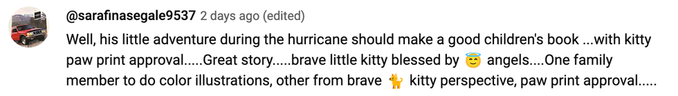 Folks thought this story was wonderful to hear after all the devastation of the hurricane.