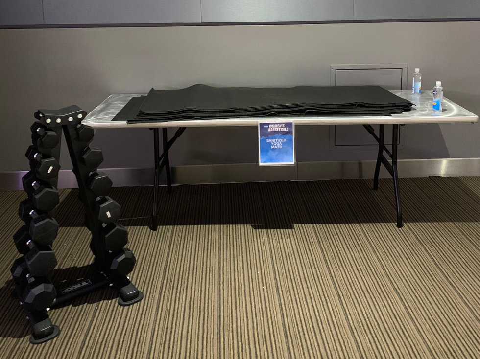 "In part, this is due to the limited space and the original plan was to expand the workout area once additional space was available later in the tournament."
