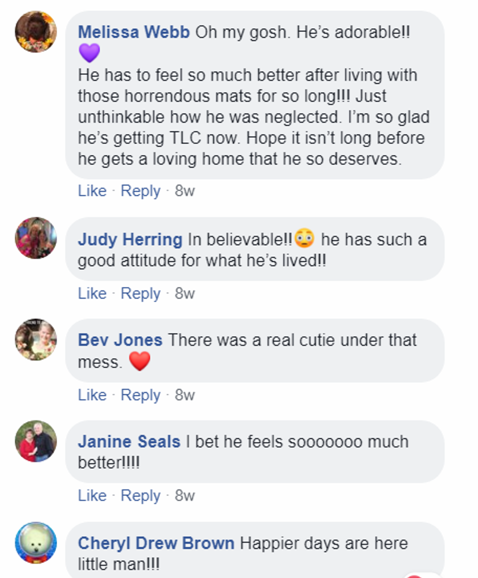 As well as a short video of Hamish immediately after his cut. He looks thin and unsure, and like he has definitely been having a rough time... but at least Hamish is identifiable as a dog after his haircut.
