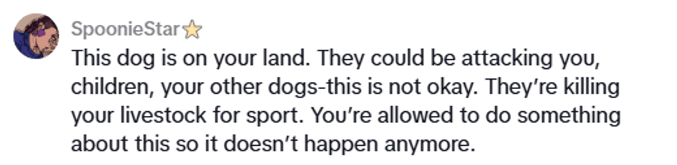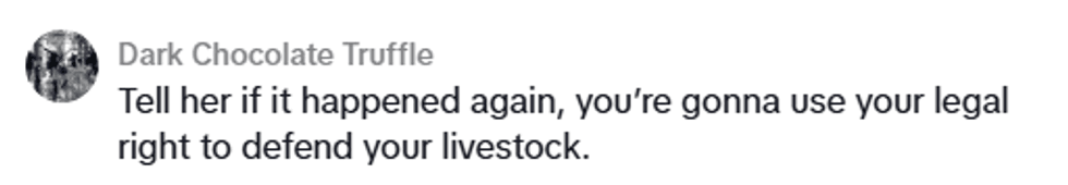 While they didn't necessarily condone violence, some TikTokers pointed out it was Lilah's right to defend her livestock by any means necessary.