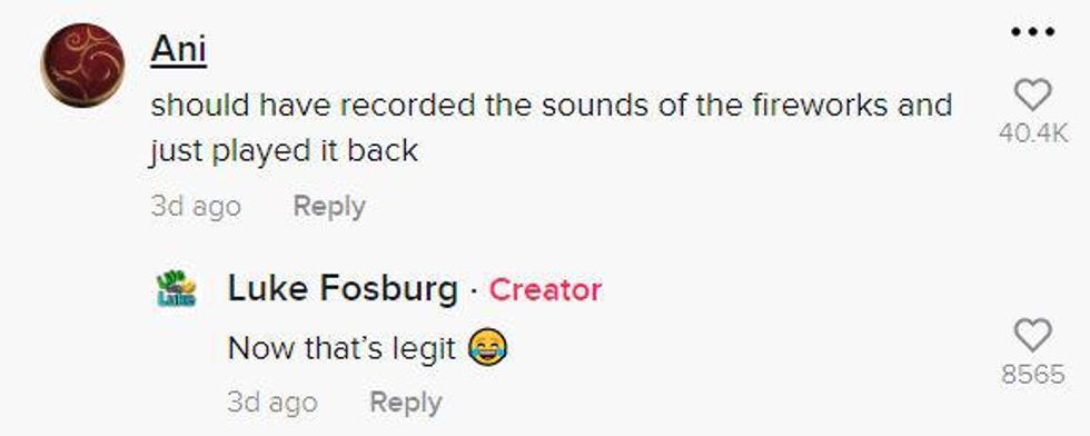 In a viral video, @lukefosburg documents a feud between neighbors setting off fireworks at night and a neighbor setting their alarm at 5:55am over the loud speaker.