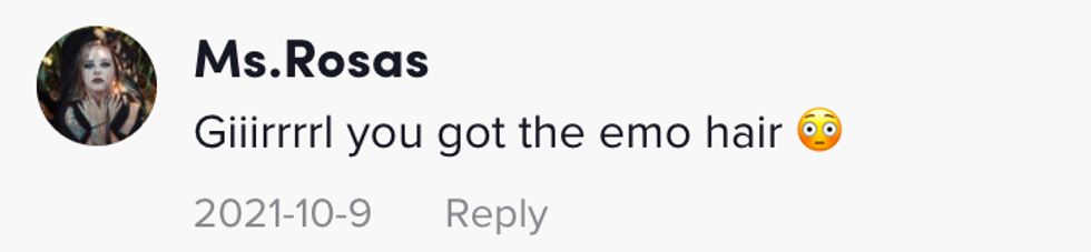 The haircut the woman received evoked the mid-00s era "emo" look, but her reference picture was not at all going for that.