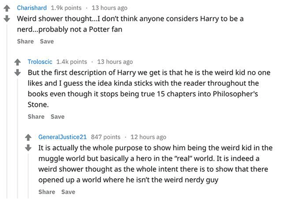 And that is just what someone did on a r/ShowerThoughts sub yesterday—freeing us all of our preconceived notions about Harry Potter. More than a decade after the first Harry Potter book was released, an anonymous Redditor shared a theory that blew more than a few minds and garnered over 3,000 comments.