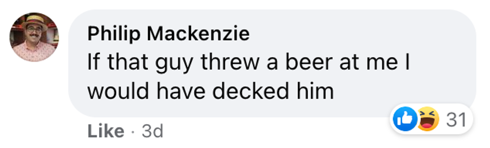"I do not condone violence or discrimination of any kind and should have simply walked away. I apologize to the person I threw my beer at and wish I hadn't done so. I apologize to anyone I offended."
