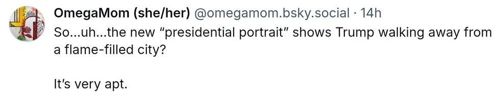 The critiques for the portrait's composition—everything on fire—were less than flattering for Trump.