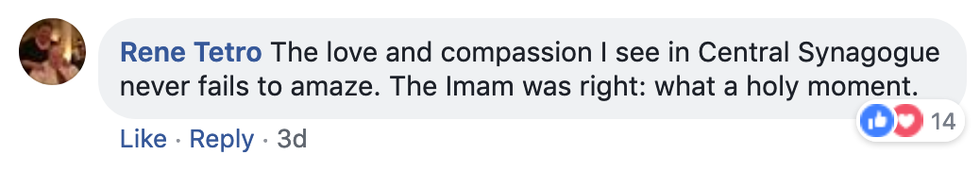 "So we invited them to pray at Central Synagogue. Their Imam said this was the holiest moment he has experienced in New York. It is certainly one of ours as well. Salaam. Shalom."