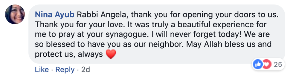 The historical synagogue's rabbi, Rabbi Stephanie Kolin, was overwhelmed by the act of religious solidarity on display.