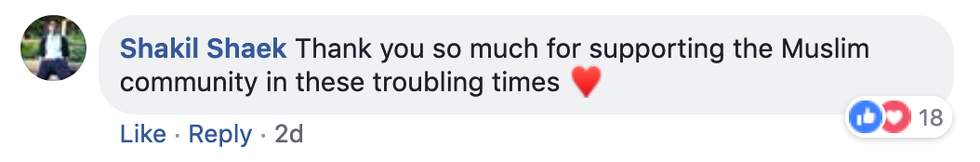"These attacks on our communities are one and the same," she told her Muslim guests, who responded with a round of applause.