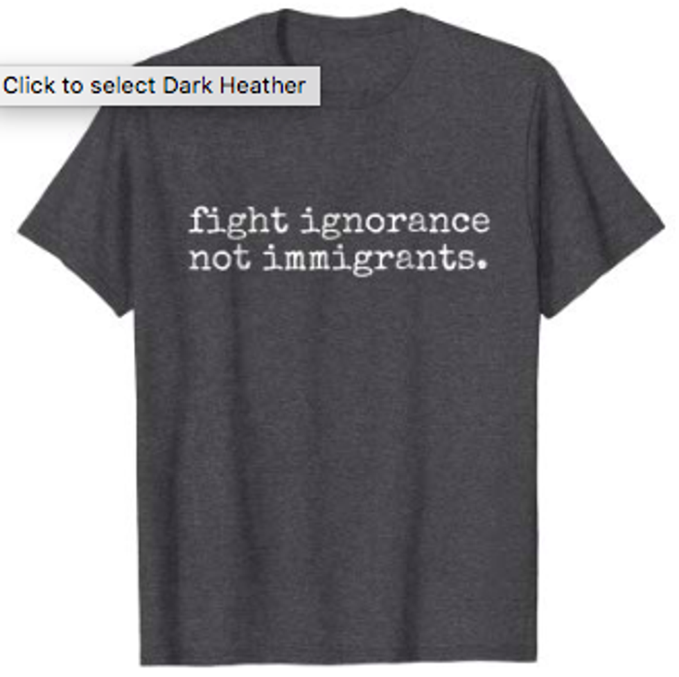 You can make your opinion heard with shirts supporting family reunification and humane treatment of migrants, with slogans like Families Belong Together, available here...