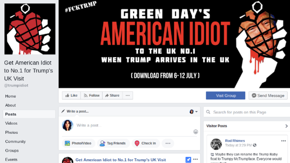 People were encouraged to download the song from July 6 to 12, the day Trump is set to arrive in the UK. They hope to have "American Idiot" top the UK pop charts just in time for the president's arrival.