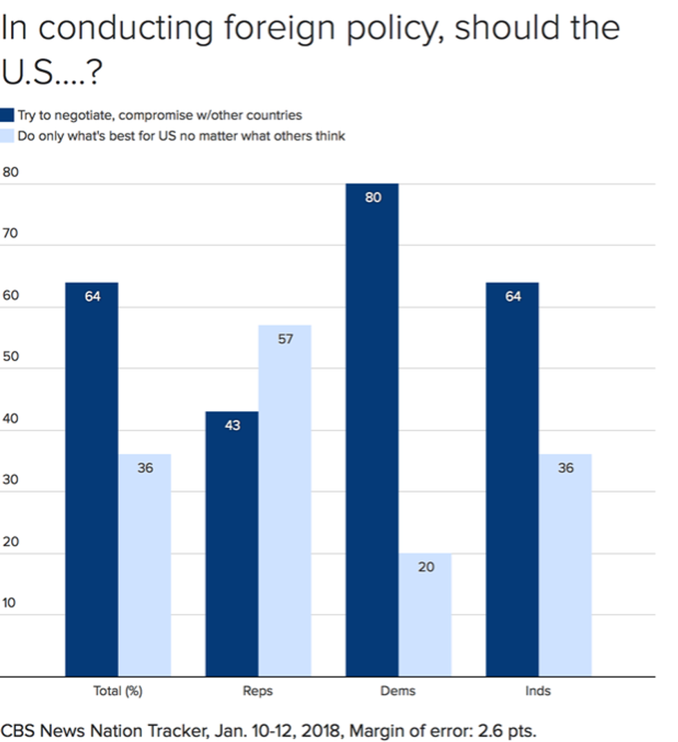 In foreign policy matters, Americans favor negotiation and compromise with other countries over nationalist views.