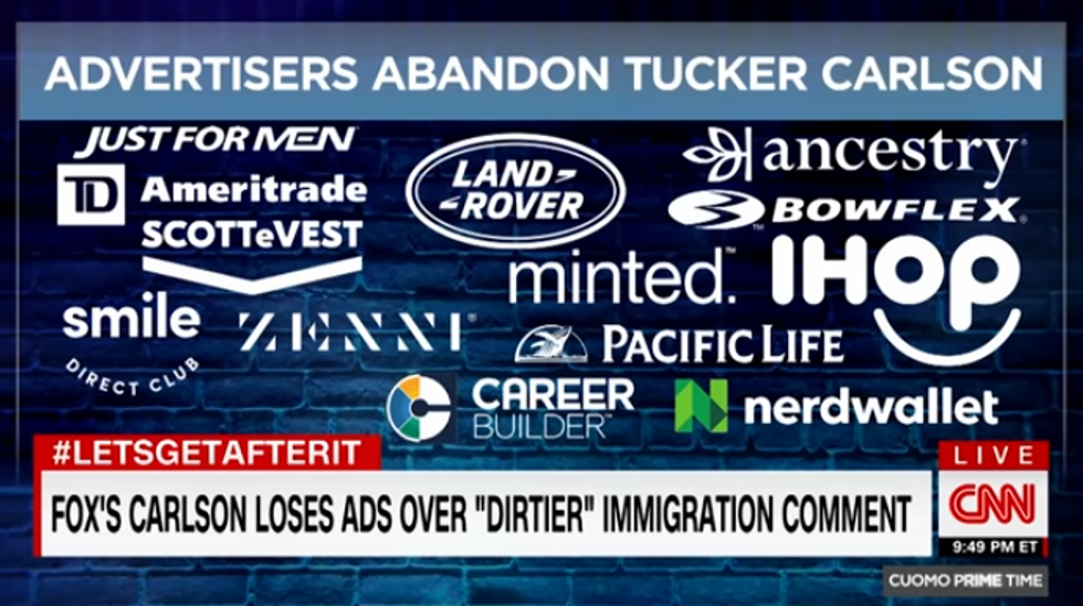 Carlson last week claimed immigrants made the United States "poorer and dirtier," prompting advertisers to pull their support of his show, Tucker Carlson Tonight.