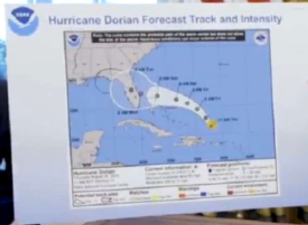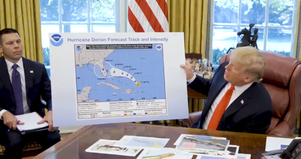 On Wednesday, while giving an update on Dorian from the Oval Office, Trump held up a forecast altered with what appears to be permanent marker to show Hurricane Dorian possibly hitting Alabama in an attempt to prove himself right.