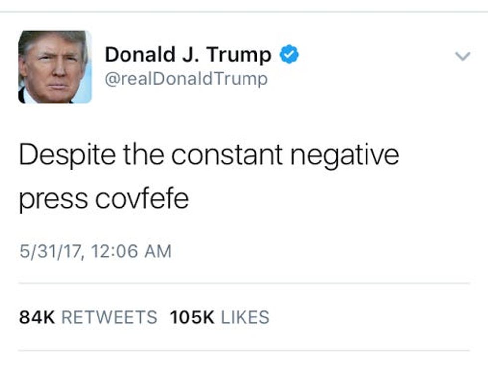 And let's not forget the typos and gibberish, like the infamous "covfefe."
