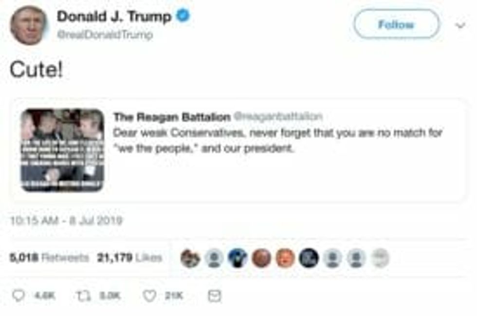 The quote, tweeted from a since-suspended account impersonating moderate Conservative publication The Reagan Battalion, claimed Reagan said of Trump: