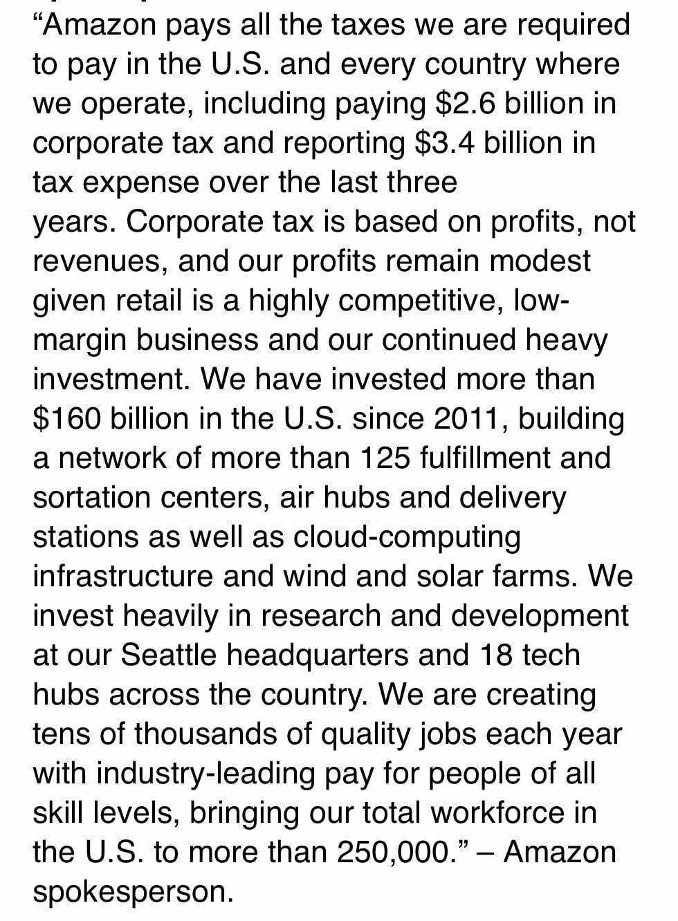 "Amazon pays all the taxes we are required to pay in the U.S. and every country where we operate."