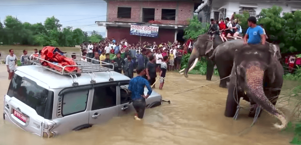 When tourists visited a Nepalese safari park in August to see endangered rhinoceroses and ride the elephants, they couldn’t have realized that these gentle giants would actually save their lives. But that’s exactly what happened, as hundreds of stranded travelers were saved from the ravages of flash flooding and mudslides by riding elephants to safety.