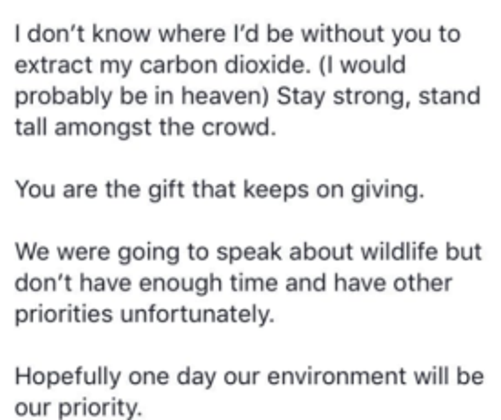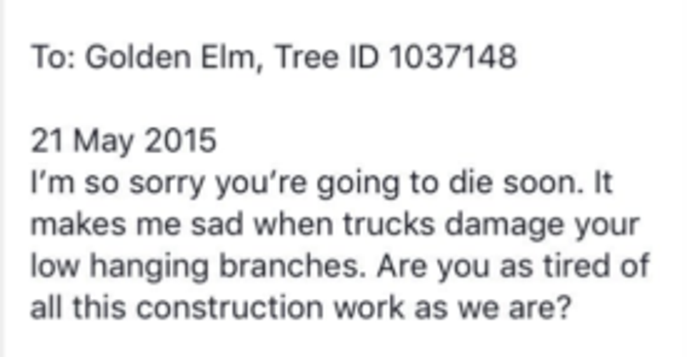 But soon, people began writing to the trees themselves, showering them with compliments and wishes of good will.