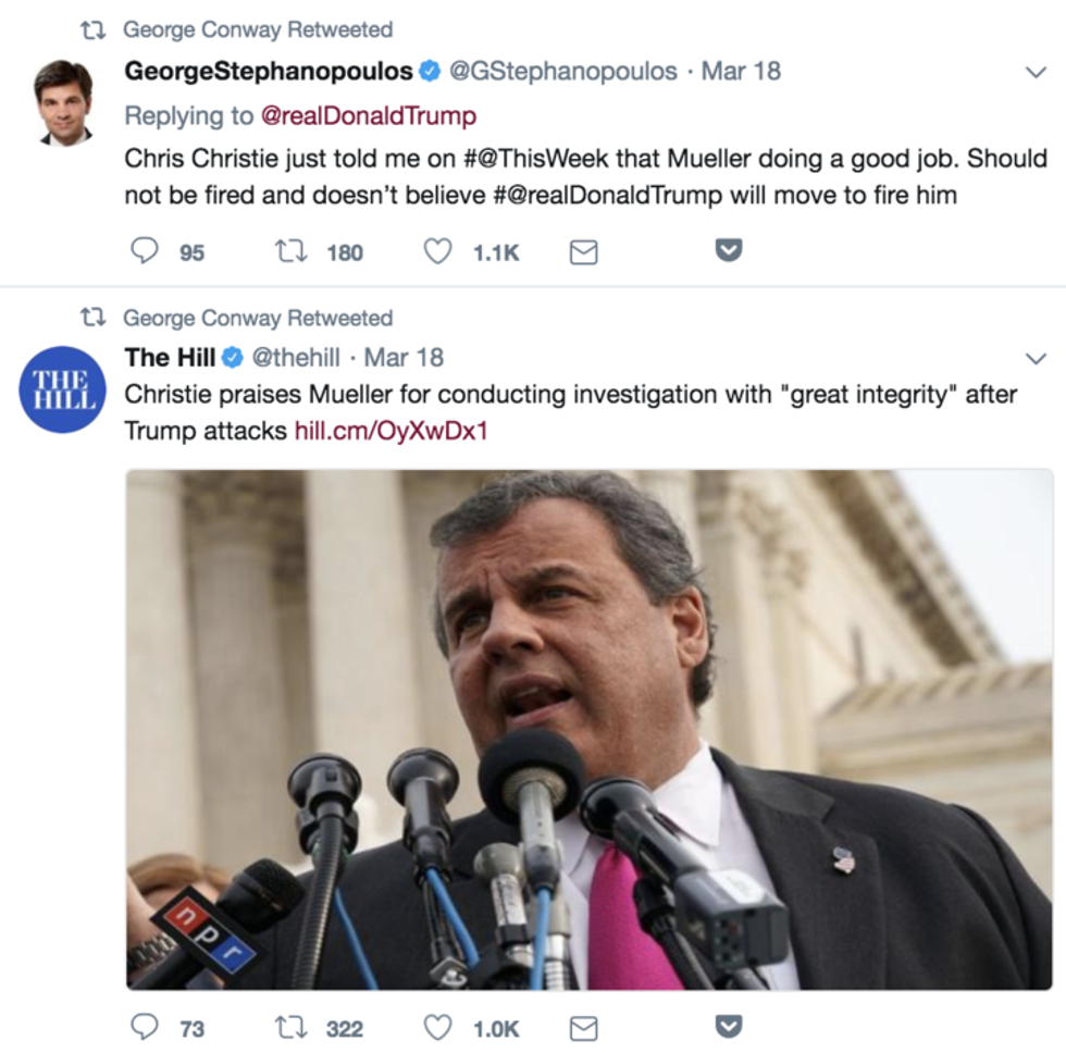 He further retweeted stories which were clearly pro-Robert Mueller, the special counsel spearheading the investigation into Russian election meddling.