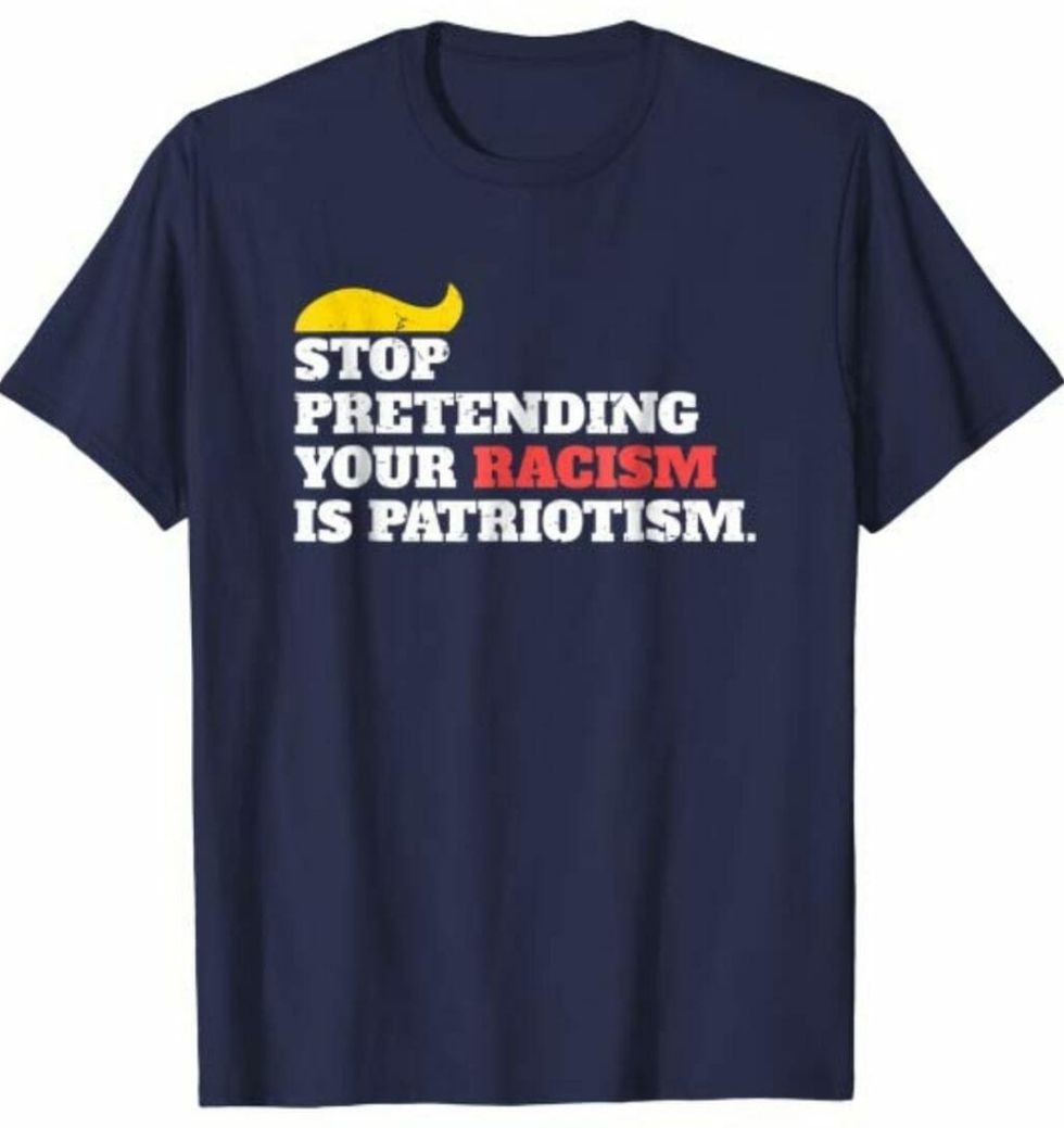 Tired of White supremacist rhetoric passed off as patriotism? This shirt is available here.