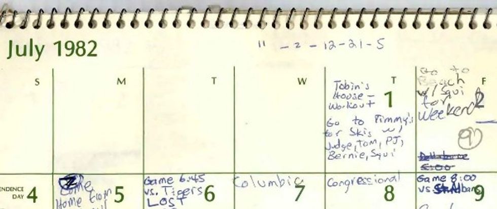 The reference to "skis" meant "brewskis", the slang term for beer. The calendar shows this was a weekday gathering involving drinking, something Kavanaugh denied happened that summer.