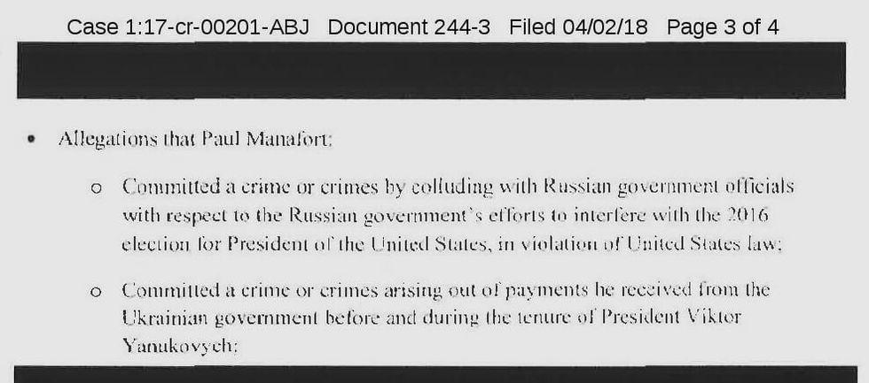 The memo, included below in the form released by Mueller to address Manafort's attempt to appeal his indictment, has captured attention for those portions that can be seen and speculation for those that can't.