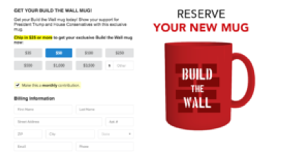 While the results of the official results of the poll are nowhere to be found on the NRCC website, they'd likely be biased anyway. After voting, the page redirects to a donation form for a "Build the Wall" mug.
