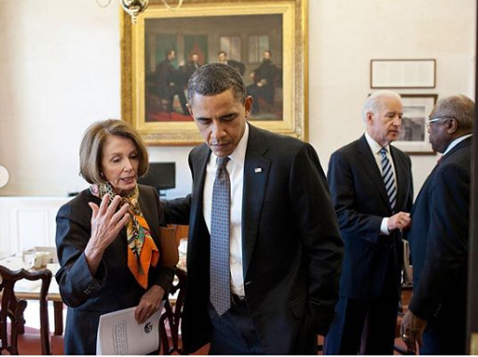 And here is Obama hosting now-Speaker Pelosi Biden, and House Majority Whip James Clyburn (D-SC). No basketball.