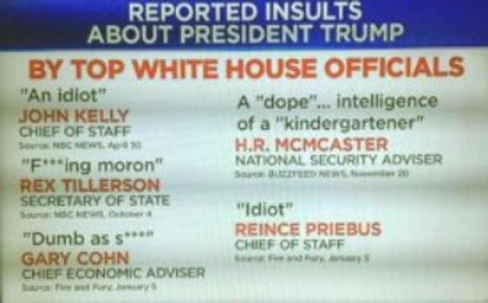But the report is certainly nothing new. There is a long history of Trump's own close officials calling him a variety of insults and NBC News decided to put them all in one place on the air on Tuesday, with what anchor Hallie Jackson called their "insult list."