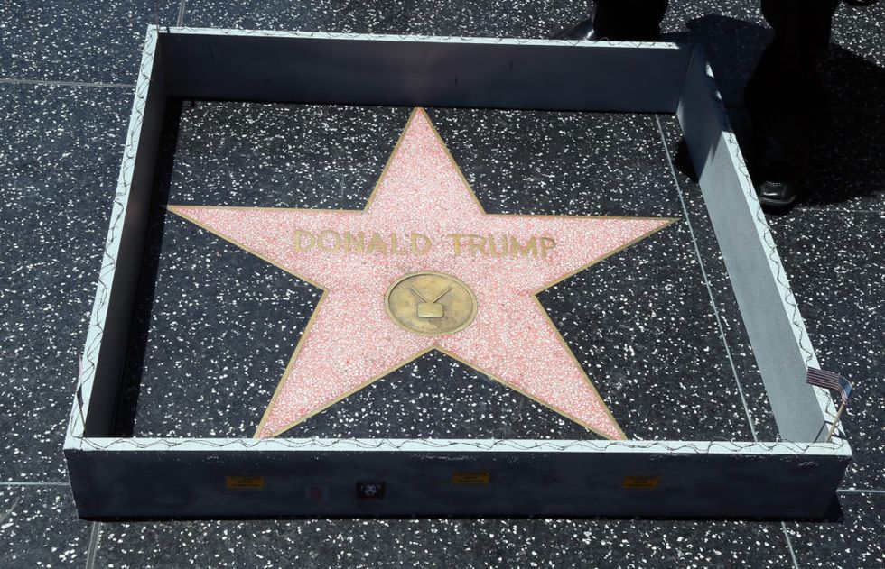 And in 2016, Plastic Jesus erected a mini wall around Trump's star, mocking the president's campaign promise to build a wall along the U.S.-Mexican border. The tiny enclosure included barbed wire and toothpick-sized American flags.