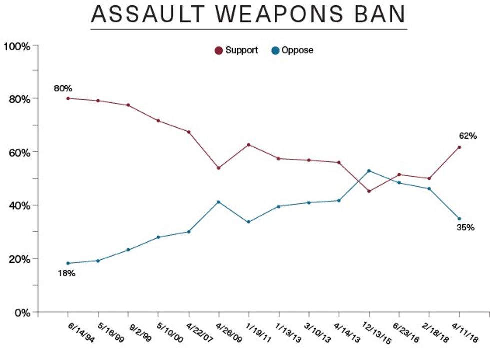 Since the deadly mass shooting at Marjory Stoneman Douglas High School in Parkland, Florida that killed 17 people, attitudes of American voters have shifted on the question of assault weapons. Over 6 in 10 United States voters now support bans on these guns.