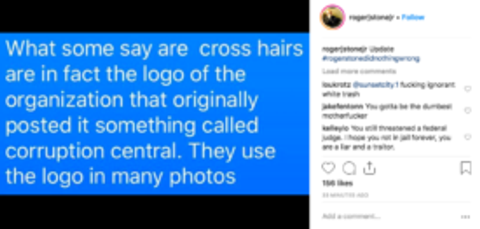 Embattled Trump advisor Roger Stone went to Instagram to complain about the judge presiding over his case, posting her picture and - wait, is that a gun sight crosshair?