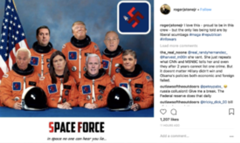 "Roger Stone found a way to simultaneously endorse Space Force and Nazis...