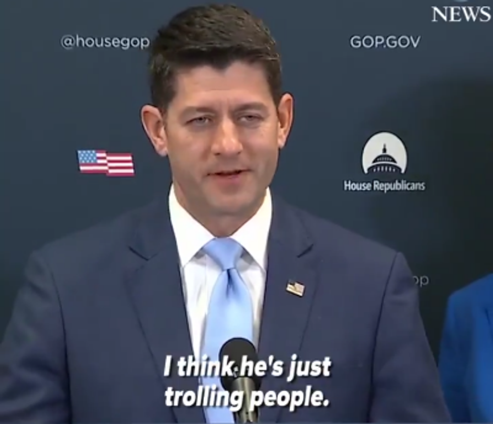 Asked what he thought of Trump's threat against private citizens, Republican Speaker of the House Paul Ryan's response?
