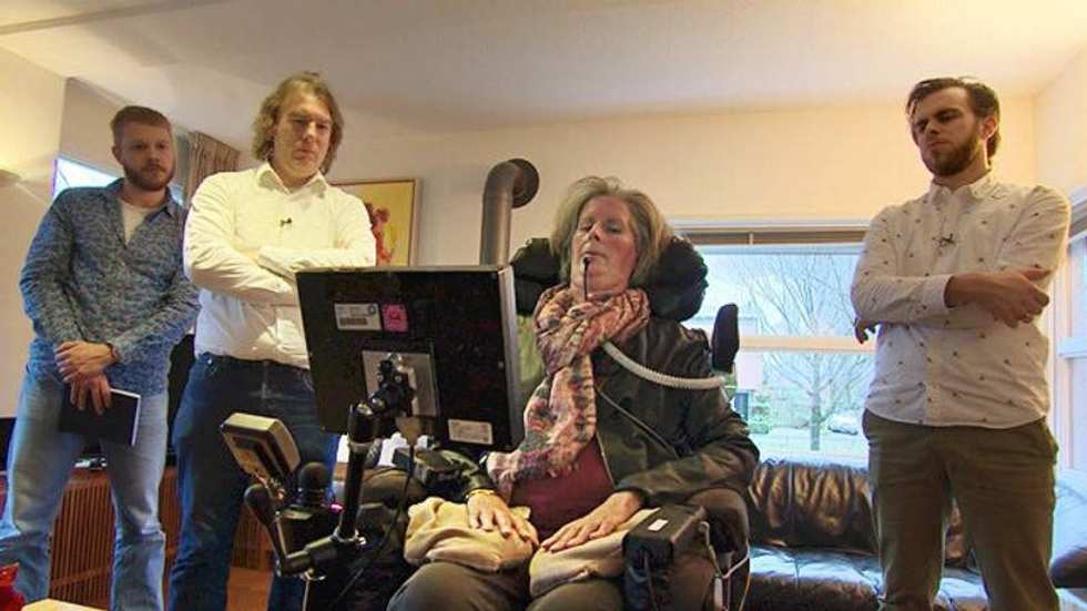 Dr. Nick Ramsey, also of the Netherlands and lead researcher on the brain-implant study, says, "It's a completely harrowing situation ... as people are still cognizant." The brain implant provides Bruijne substantial improvement in her ability to communicate.