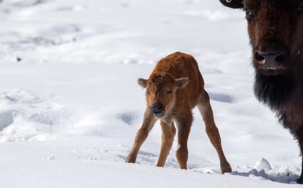 "The bison moms know what they're doing," he said. "Our staff are in the woods carefully hiding from the sidelines to see if everything's going well."