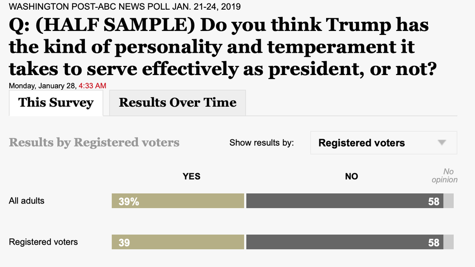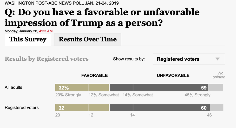 The American people have made their opinions clear about President Trump, and it's not pretty. In a poll conducted by The Washington Post and ABC News, almost 6 in 10 people said they have an "unfavorable view of the president as a person."