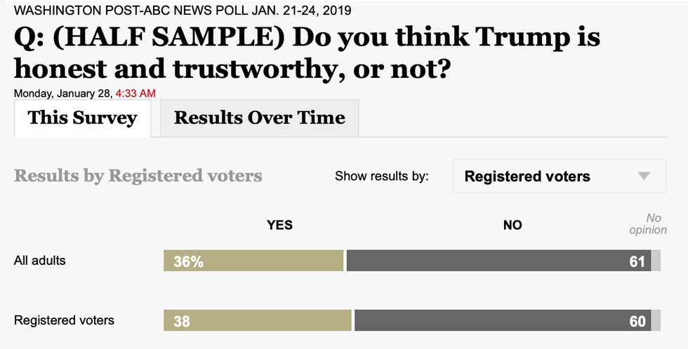 61 percent of adults said they don't think Trump is honest and trustworthy.