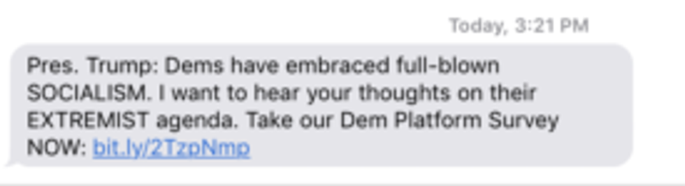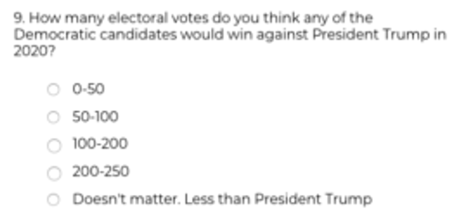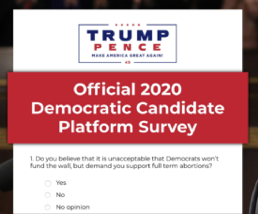 The Trump campaign's latest survey, regarding 2020 Democratic candidates, focuses on the latter.