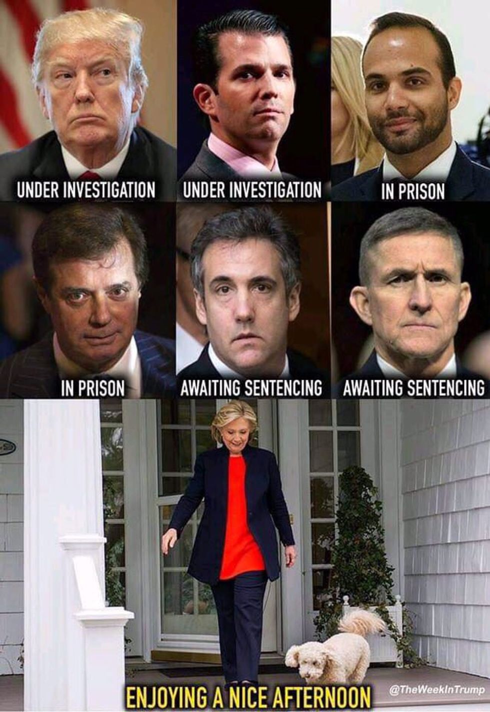 Trump began his retweet storm with a meme. In it, former Presidents, Robert Mueller, Democratic leaders and members of his own administration are shown behind bars. The meme calls for "treason trials" for all.