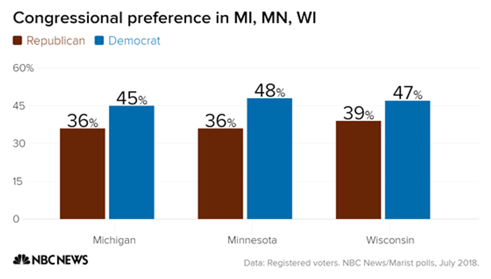 In congressional preference, the Democrats lead the GOP by 8 to 12 percentage points, approaching 50 percent. While preference for Republican legislators fared better than Trump, not by much.