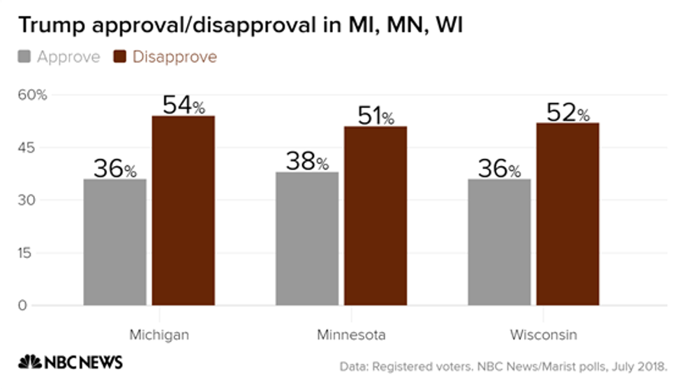 Over 50 percent of voters in all three states disapprove of the job Trump is doing at the White House.